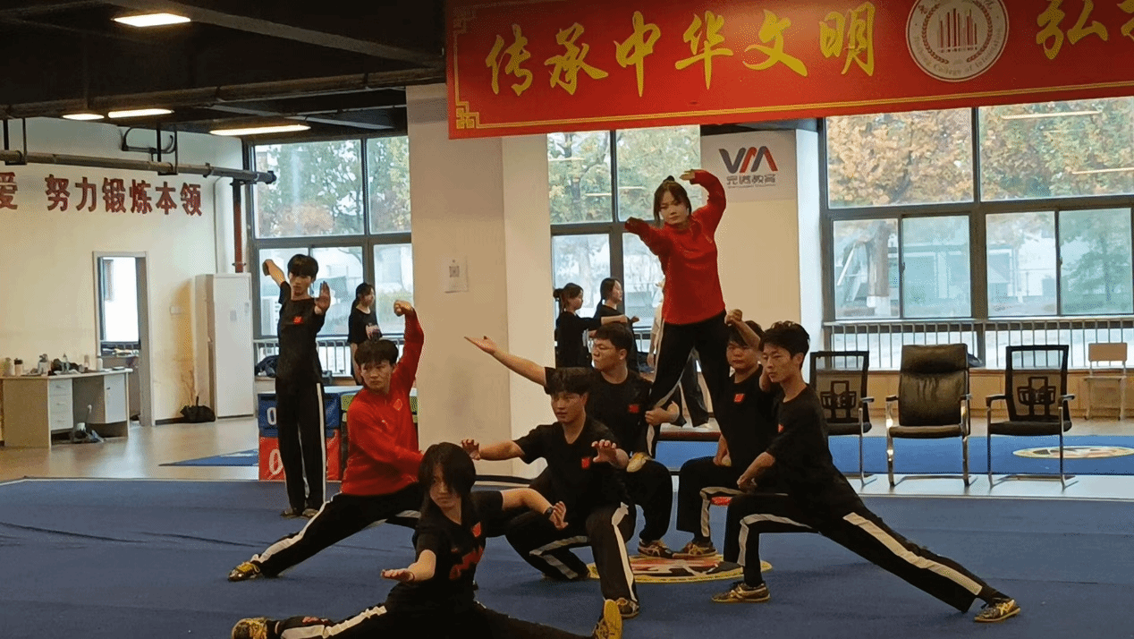 作为开场环节的重要组成部分,我校武术队的表演以“传承武魂,致敬时代”为主题,队员们身着整齐服装,步伐稳健、气势如虹,先后展示了,形意拳,八极、刀术、等经典项目。刚劲有力的动作、行云流水的招式、整齐划一的队形,不仅展现了扎实的武术功底,也传递出团结协作、拼搏进取的精神。