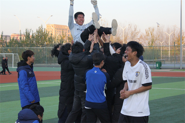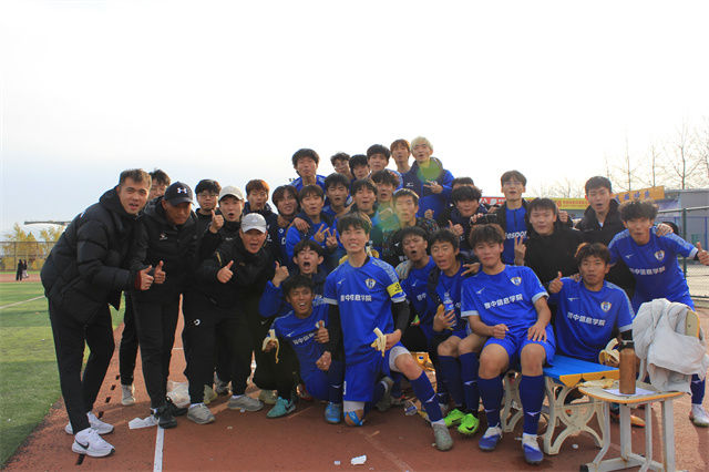 晋中信院男足以小组头名晋级,面对球队伤病太多的情况,队员们咬牙坚持,点球大战每一轮都扣人心弦,门将神勇扑出关键一球,最终以4:3险胜!